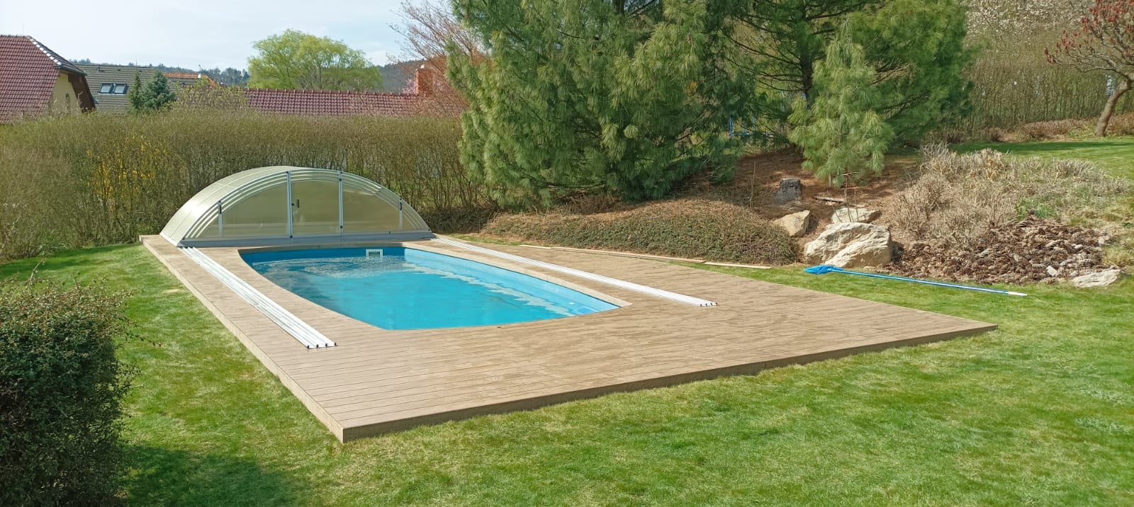Hliníková pergola s plným polykarbonátovým zastřešením