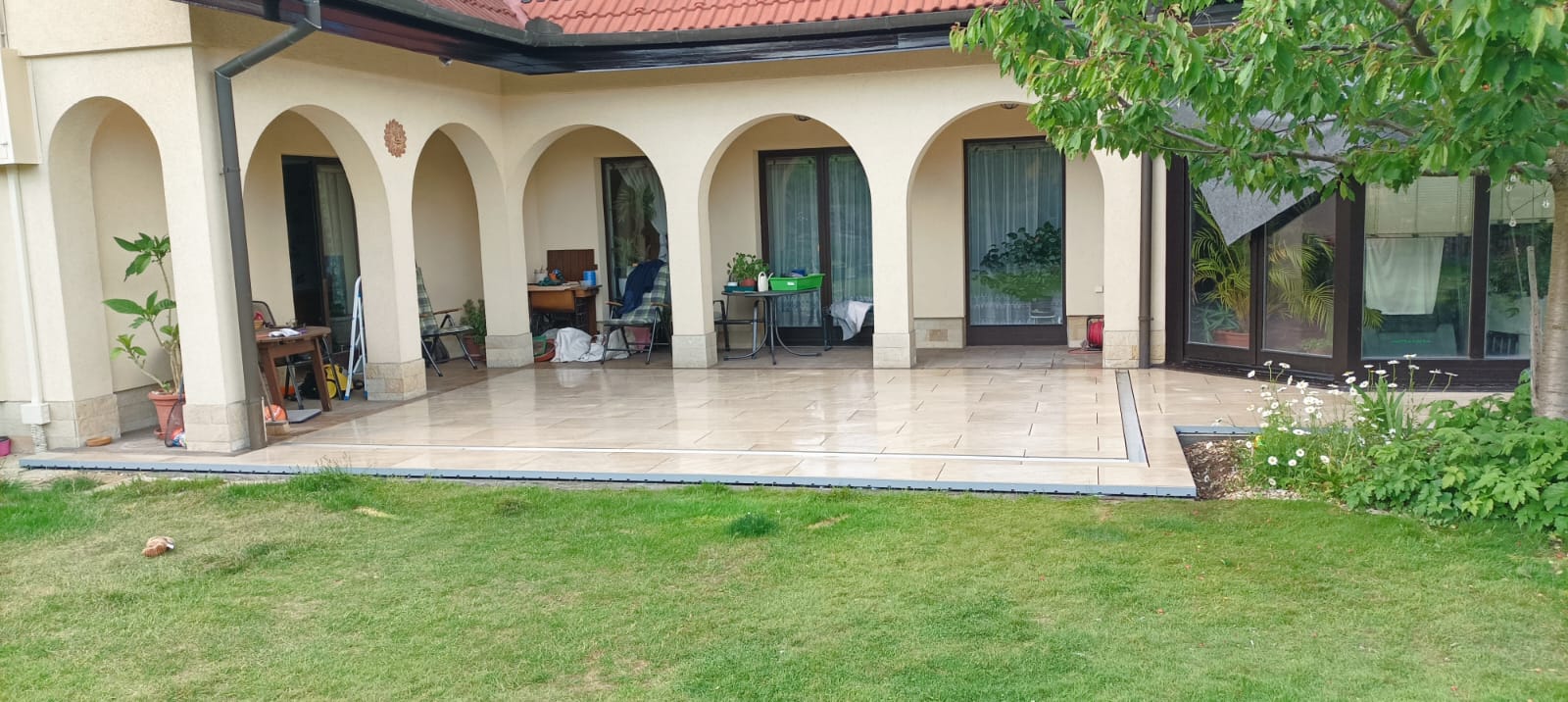 Hliníková pergola se skleněným zastřešením